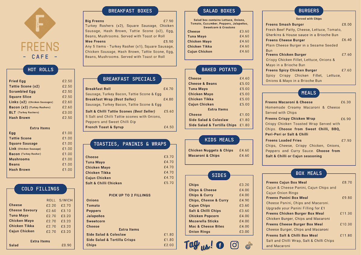 Located in the heart of Kilmarnock, Freens Cafe at 47 New St, Riccarton, is an inviting spot where you'll find a delightful array of breakfast and lunch options that keep the local community buzzing with energy. With a warm and welcoming atmosphere, this café is perfect for a casual meetup with friends or a quick bite during a busy day.